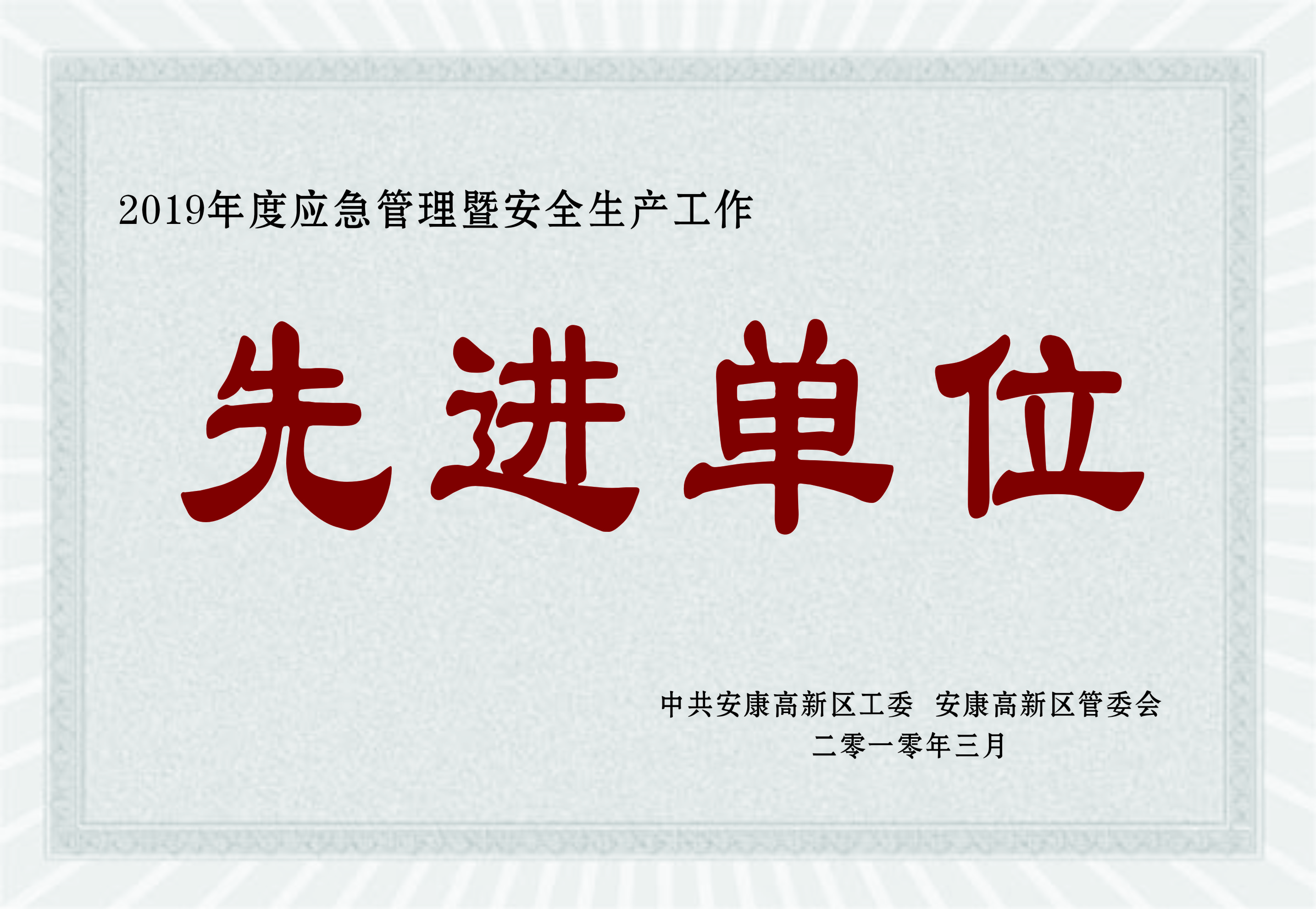 2019年安全生產(chǎn)工作先進(jìn)單位